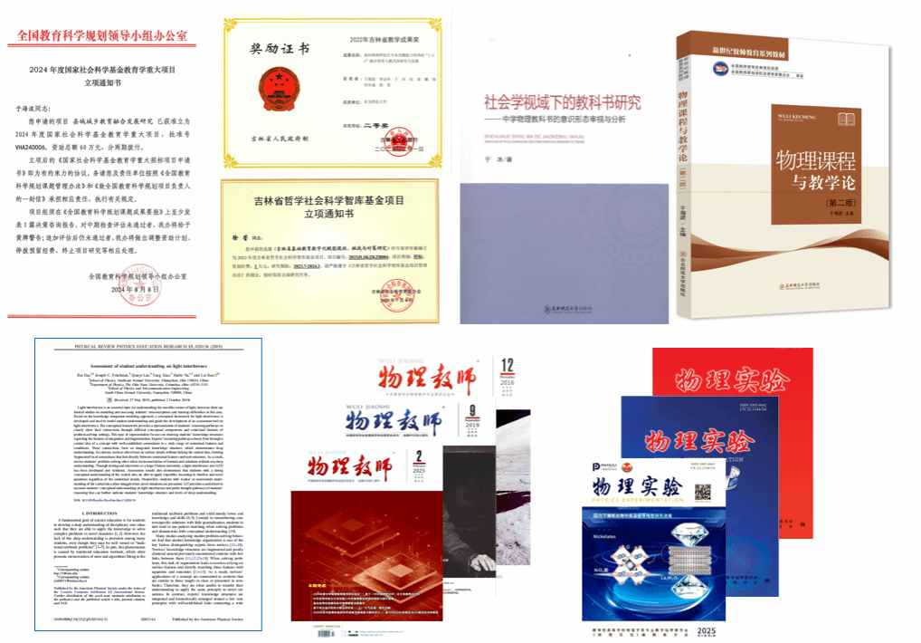 近年来,学科教师聚焦物理课堂教学、实验教学、教师教育以及科学教育研究,获批全国教育科学规划重大项目、教育部人文社科重大研究项目、国家社会科学基金教育学课题等国家级、省部级项目近20项,在《求是》《光明日报》《Physical Review Physics Education Research》《教育研究》《中国教育学刊》《物理教师》等重要刊物上发表学术论文百余篇,出版学术专著和教材6部,荣获吉林省教学成果二等奖,所取得研究成果在级别和数量上位居国内同学科前列。